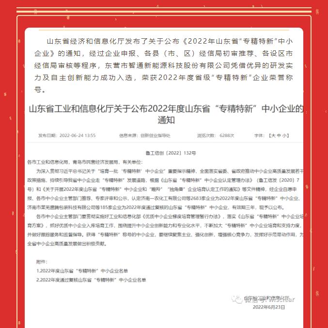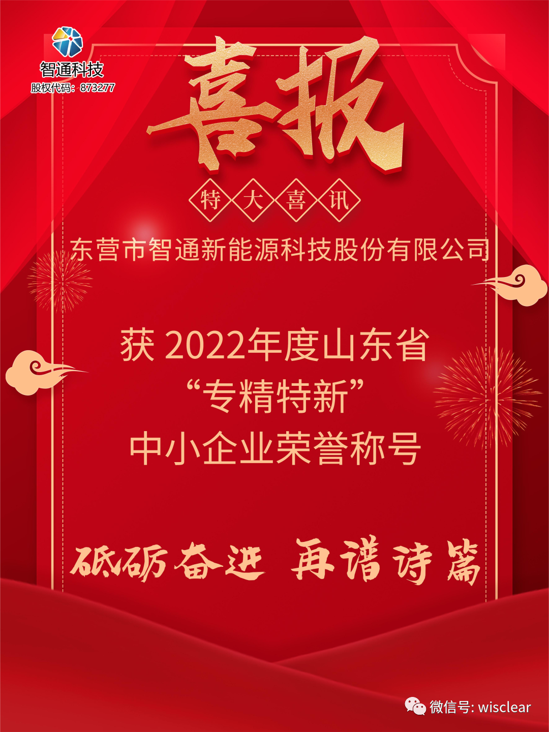 智通科技榮獲2022年度山東省“專精特新”企業(yè)榮譽(yù)稱號(hào)